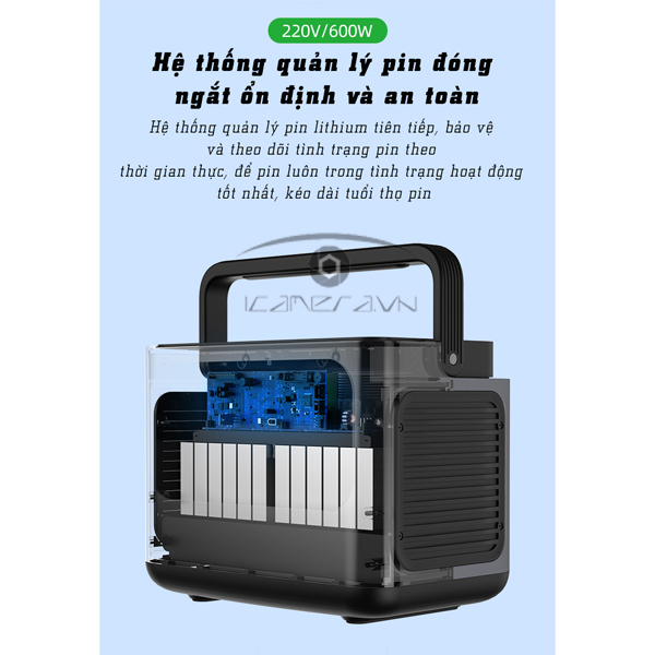 Công suất siêu khủng 540Wh, bền bỉ, điện ngoài không lo · Đầu ra AC công suất cao 600W, công suất đỉnh lên đến 1200W, hỗ trợ sạc kép DC + USB-C · AC/DC/USB-C/USB-A/bộ sạc xe hơi năm giao diện, tương thích siêu rộng, tối đa 9 thiết bị cùng lúc ·