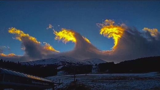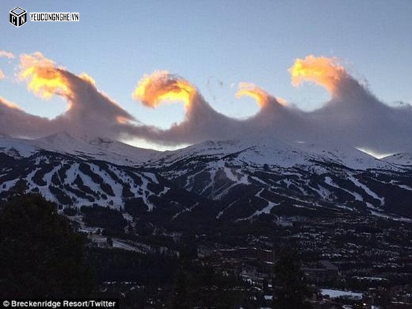 Theo đó, những đám mây lượn sóng được người ta ghi nhận trên bầu trời Colorado, Mỹ. Từ hình ảnh có được cho thấy, chúng tựa như lát cắt ngang của cơn sóng biển, trên ngọn có màu vàng cam, kích thước lớn nhỏ khác nhau đang cuồn cuộn trôi tạo thành khung cảnh hùng vĩ.