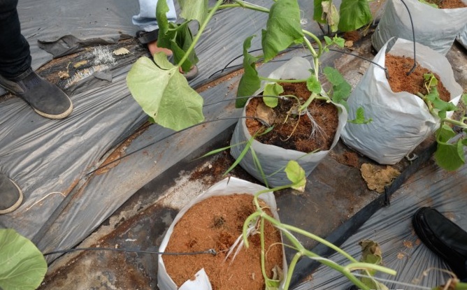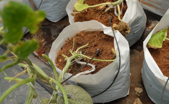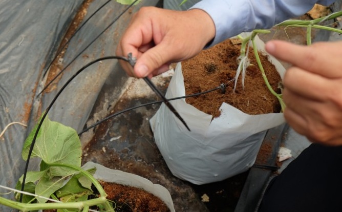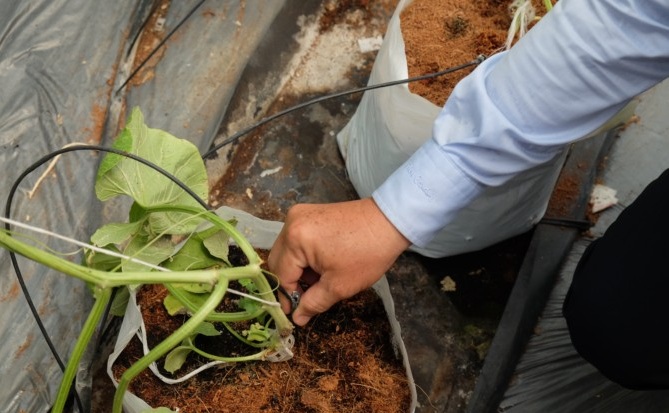 Mỗi gốc dưa lưới này đều có 1-2 vòi tiếp tế dinh dưỡng với nhiệm vụ cung cấp nước và các vi chất dinh dưỡng cần thiết cho quá trình sinh trưởng của cây