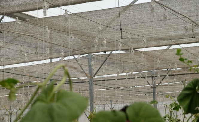 Dưa đã tới mùa thu hoạch và ngưng việc chăm sóc. Trong ảnh, dưa hoàng kim (màu vàng) là giống cây mới đang được thử nghiệm theo quy trình Smart Agri