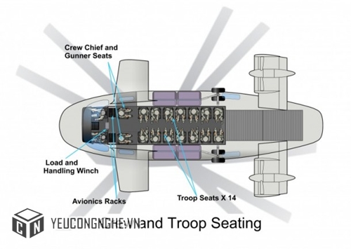 Thiết kế này nặng khoảng 12.000 kg và có thể chịu được sức nặng lên tới 5.900 kg, có khả năng mang theo 12 quân chiến đấu cùng 4 thành viên phi hành đoàn. Phía trước máy bay có một đôi cánh lớn có thể đáp ứng được 40% của tốc đọ bay, phía sau có một đoạn nối giúp bốc dỡ hàng hóa nhanh hơn. Ngoài ra, sẽ có tháp pháo ở bụng và hộc lắp vũ khí.AVX đã được tạo ra bởi một nhóm các kỹ sư làm việc cho hãng máy bay trực thăng Bell.