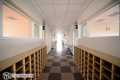 Đặc biệt, trường còn thiết kế khu phòng ngủ riêng biệt để học sinh nghỉ trưa. Ngăn đựng đồ cá nhân, khăn mặt, chậu rửa tay được đặt ngay phía ngoài phòng ngủ.