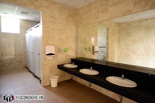 Mỗi tầng đều được thiết kế hai phòng vệ sinh dành riêng cho nam và nữ. Nội thất phòng vệ sinh của trường không thua kém bất cứ trung tâm thương mại, nhà hàng, khách sạn hiện đại nào.