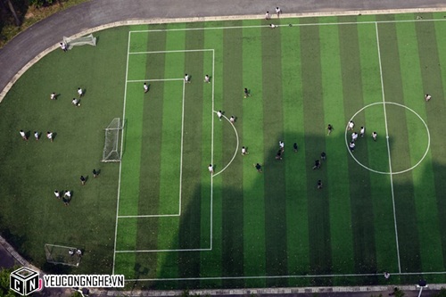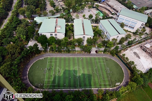 Đặc biệt, sân bóng đá nằm trong khuôn viên trường có kích thước 40x60 m, đạt chuẩn FIFA cho thi đấu 7 người. Mặt sân được phủ lớp cỏ nhân tạo theo tiêu chuẩn quốc tế. Để đạt được tiêu chuẩn này, sân bóng phải đảm bảo tất cả các yêu cầu từ diện tích, độ dốc, nền móng, thảm cỏ, hàng rào, đèn chiếu sáng.