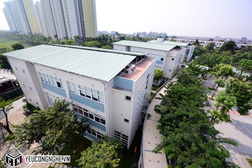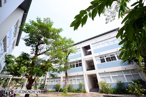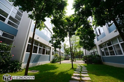 Giữa mỗi dãy nhà là khoảng không gian rộng được trồng cỏ, cây xanh giúp tất cả các phòng học thông thoáng và chiếu sáng tự nhiên, chắn nắng gắt.