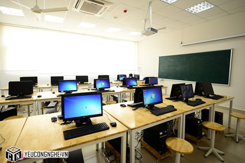 Phòng tin học được thiết kế bao gồm 30 máy vi tính, kết nối mạng đủ điều kiện phục vụ cho học sinh một lớp.