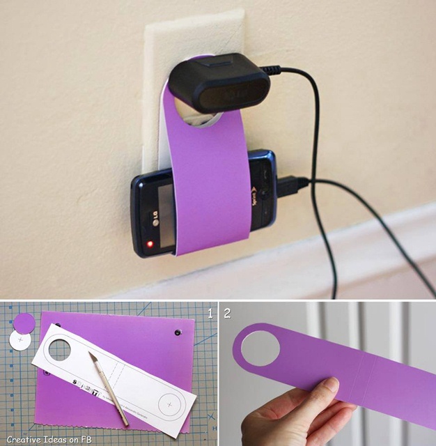 3. Dùng một miếng bìa cứng bằng giấy và làm như hình, bạn đã có một giá đỡ điện thoại khi sạc pin vô cùng tiện lợi.