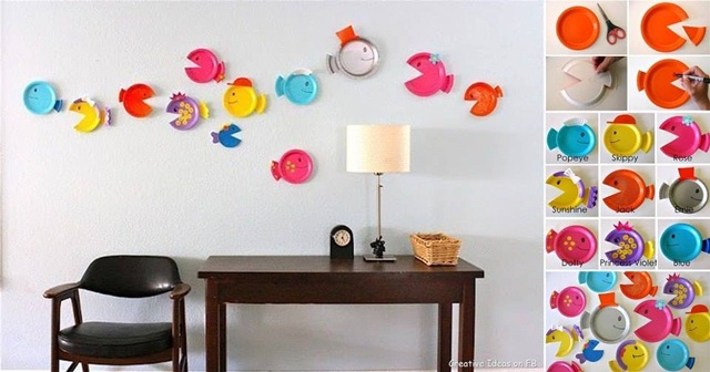 6. Cắt đĩa giấy thành hình con cá để trang trí lên tường nhà