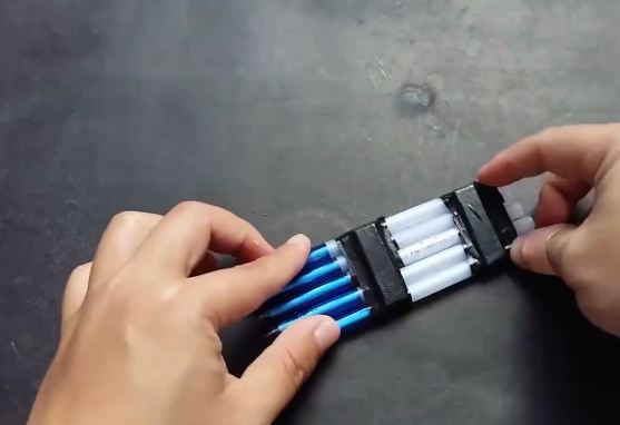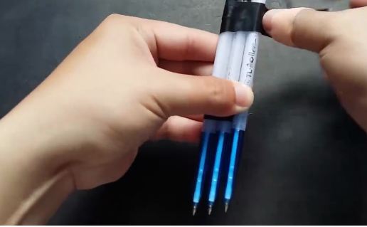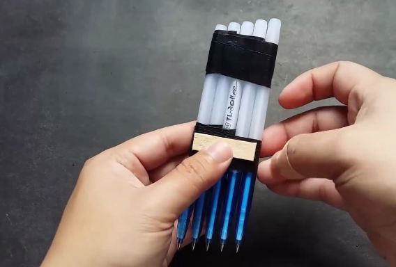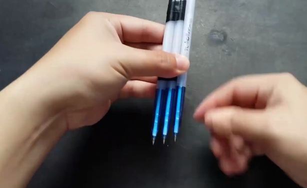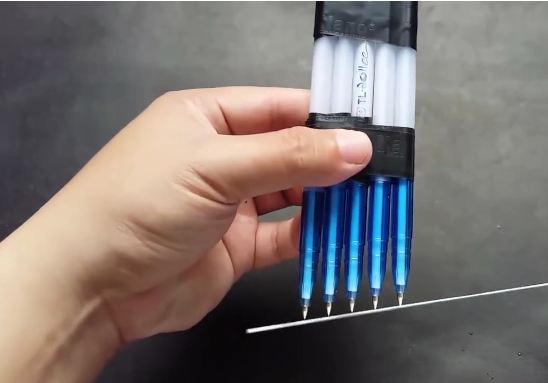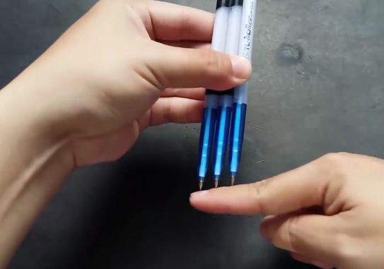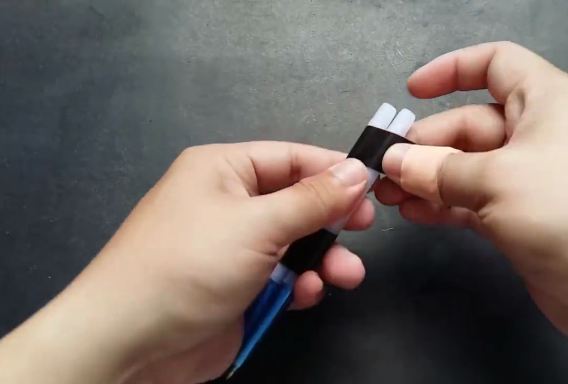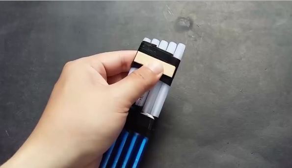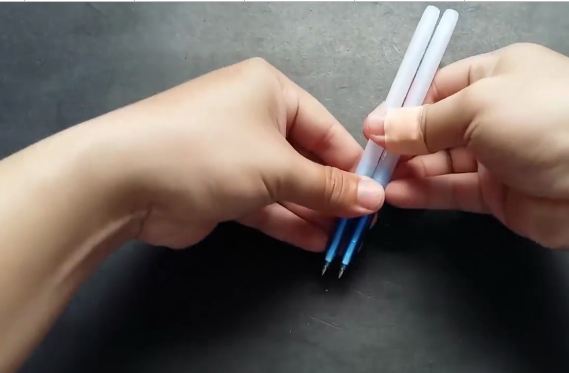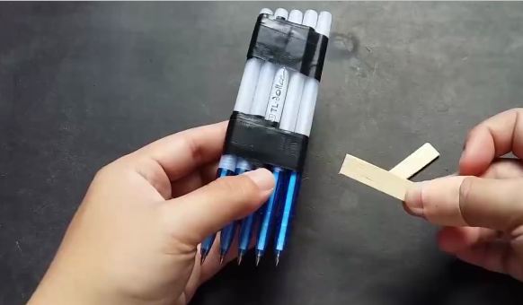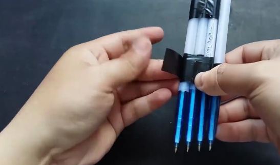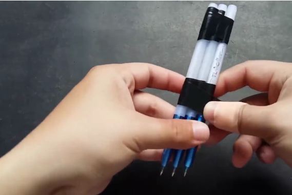 Dán băng keo cố định ở đầu trên và khoảng giữa 2 cây viết lại với nhau.