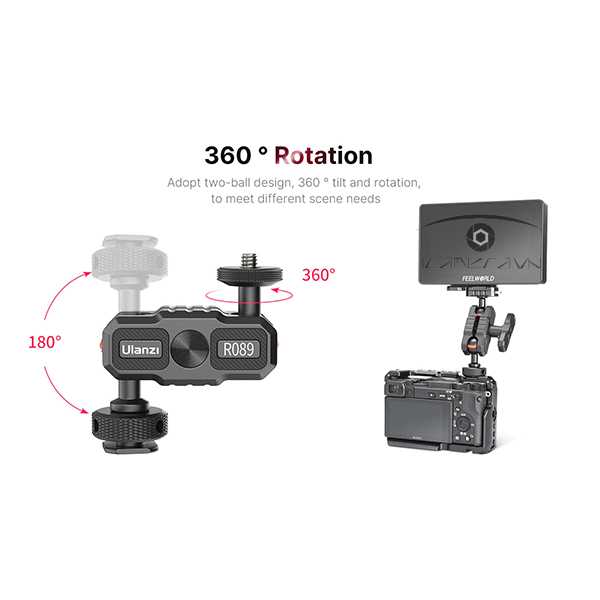 Tương thích rộng rãi: Giá treo màn hình R089 vừa với tất cả các máy ảnh và tương thích với lồng máy ảnh UURig, Smallrig, Neewer, CAMVATE,..
