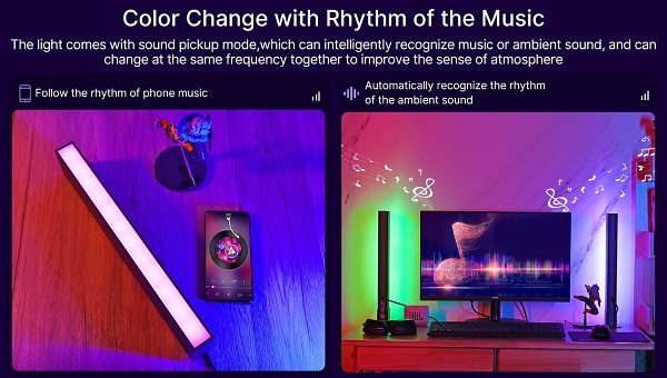 Thay đổi màu sắc theo nhịp điệu âm nhạc: Vijim GL01 đi kèm với chế độ sound pickup, có thể nhận ra âm nhạc hoặc tự động nhận dạng nhịp điệu của âm thanh xung quanh 1 cách thông minh.