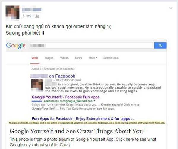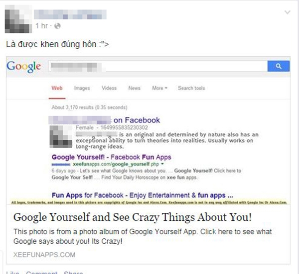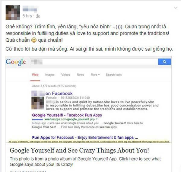 Chỉ với vài thao tác đơn giản, đăng nhập vào một đường link của ứng dụng, bấm chọn "Google Yourself" là kết quả đã nhanh chóng hiện ra. Và có thể do sự đơn giản về thao tác, nên rất nhanh chóng, ứng dụng "tìm kiếm bản thân" này đã xuất hiện khắp cộng đồng mạng.