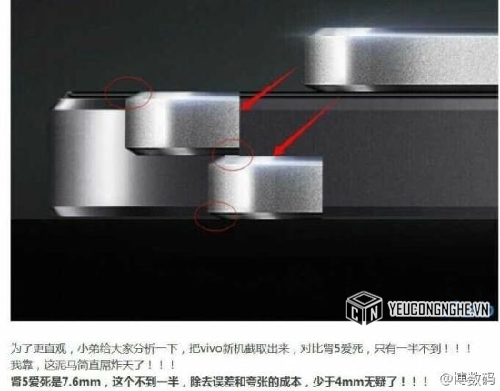 Nhìn những bức ảnh mà Vivo đăng tải, bạn có thể thấy smartphone sắp ra mắt của hãng này trông giống dụng cụ phẫu thuật hơn là một chiếc điện thoại. Nếu thực sự sở hữu độ dày chỉ 3,8mm, thì chiếc smartphone này sẽ khiến cả Apple iPhone 6 (6,8mm) lẫn Gionee Elife S5.1 (5,1mm) trở nên... quá dày!