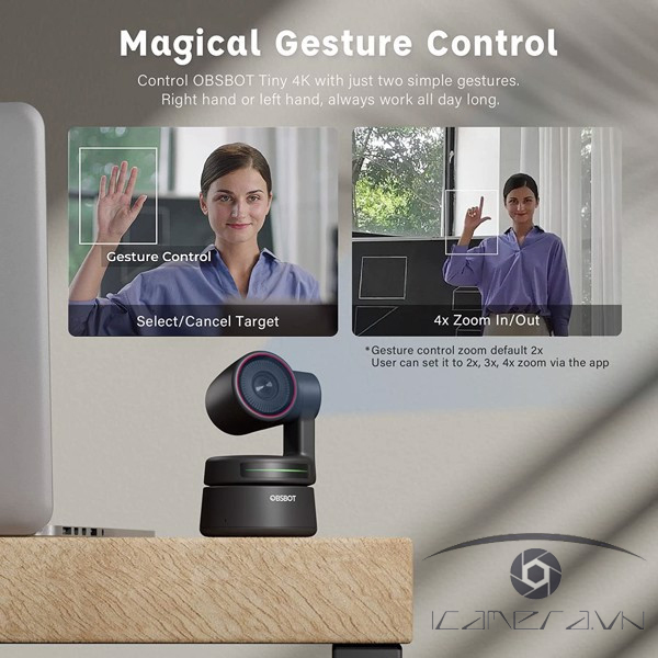 Điều khiển OBSBOT Tiny 4K chỉ với hai cử chỉ đơn giản: