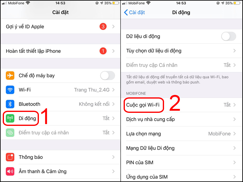 Bước 1: Mở ứng dụng Cài đặt trên điện thoại > Chọn Di Động > Tìm đến Cuộc gọi Wi-Fi