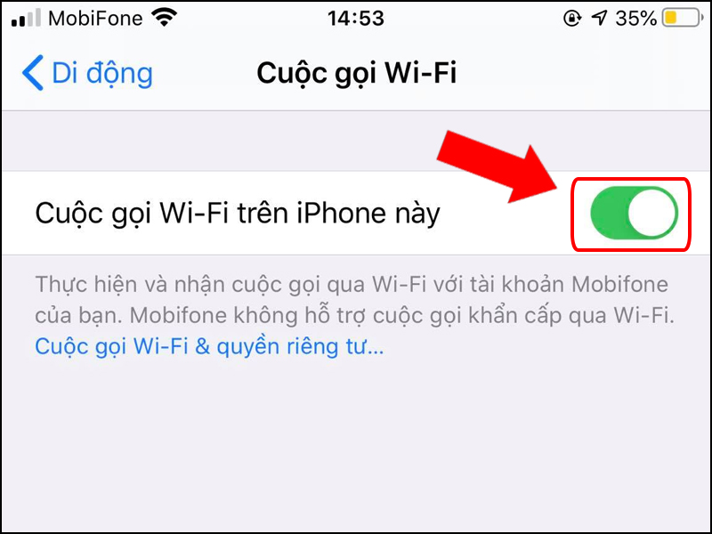 Bước 2: Tick bật Cuộc gọi Wi-Fi trên iPhone này.