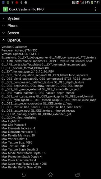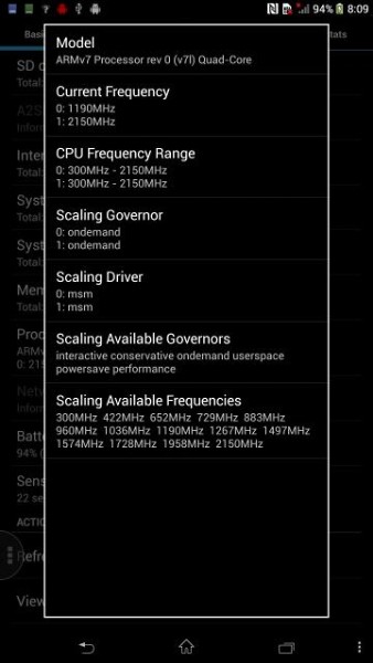 Ảnh chụp màn hình tiết lộ thông số kỹ thuật của Xperia Z Ultra.