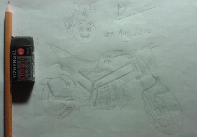 Bản phác thảo ý tưởng do chính anh Việt tự vẽ. Do từng có thời gian làm việc cho một công ty sản xuất linh kiện, phụ tùng cho xe máy, nên chủ nhân của chiếc xe có thể hiểu khá rõ về các chi tiết cơ khí.