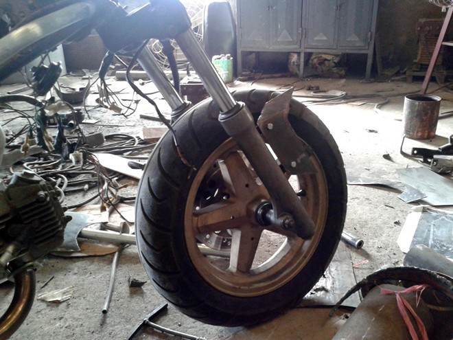 Theo anh Việt, công đoạn khó khăn nhất khi chế tạo mẫu xe này chính là việc tiện nhông và gò tạo dáng bình xăng, bởi các chi tiết này phải đảm bảo tính thẩm mỹ cũng như sự an toàn khi sử dụng.