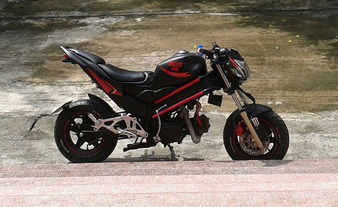 Từ một chiếc xe Win và Suzuki Avenis, một nhân viên kế toán tại Hải Dương đã tự chế ra mẫu xe theo phong cách những chiếc naked bike của Ducati.