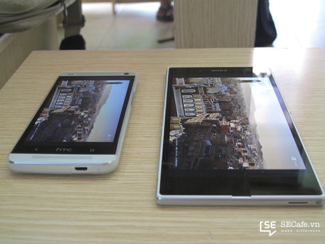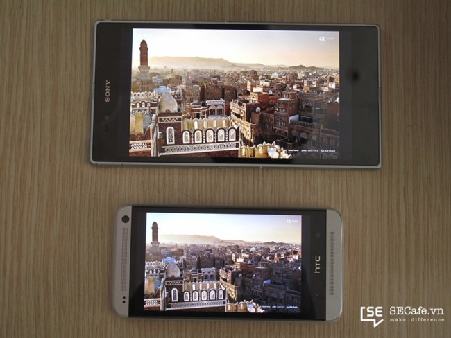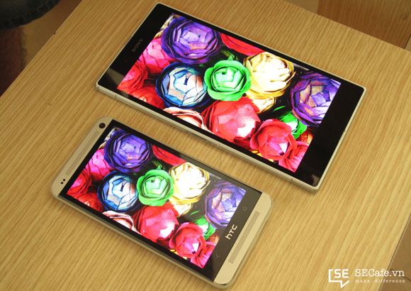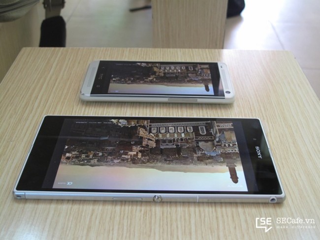 Ảnh so sánh màn hình giữ Xperia Z Ultra và HTC One (Nguồn: Secafe.vn)
